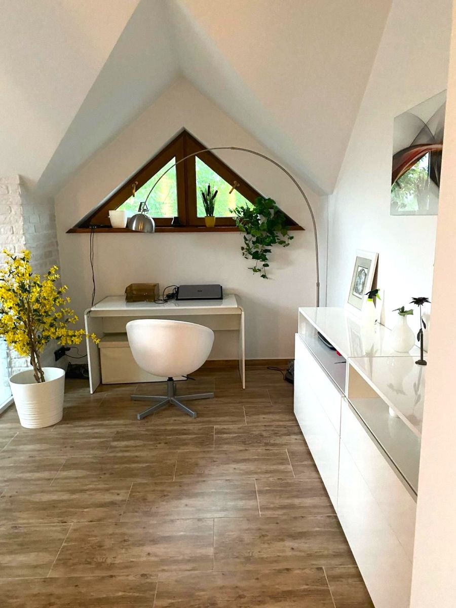- nad jadalnią, w stylu loft , znajduje się antresola na wysokości 6,5 m, dodająca wnętrzu unikalnego charakteru.