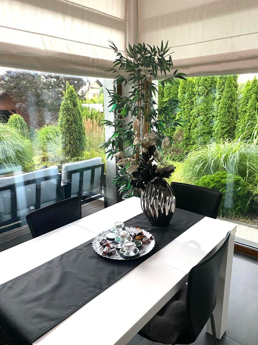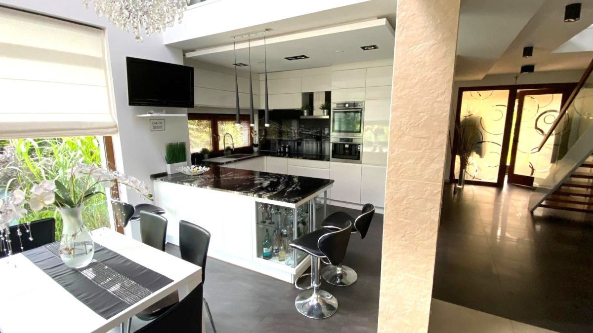 Dom jest w pełni umeblowany i wyposażony w sprzęt AGD i RTV, gotowy do zamieszkania od zaraz . Na uwagę zasługują rozbudowane systemy oświetlenia , które tworzą niepowtarzalny klimat, liczne szafy wnękowe zapewniające miejsce na przechowywanie oraz zaawansowane systemy bezpieczeństwa, w tym czujniki ruchu w każdym pomieszczeniu, gwarantujące spokój i ochronę oraz kamera przy wejściu głównym.