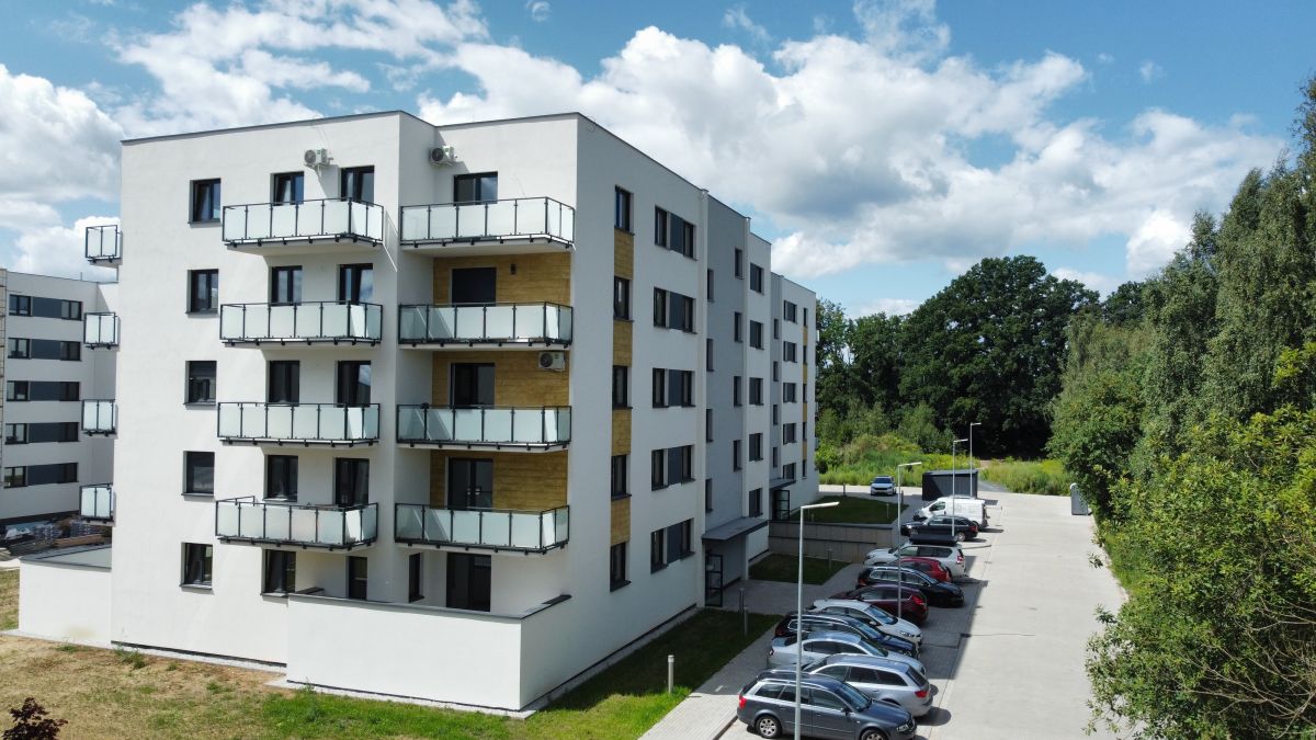 - Przestronny salon z aneksem kuchennym o powierzchni 26, 27 lub 33 m² (w zależności od wybranego mieszkania), z wyjściem na balkon bądź taras — idealny na poranną kawę lub wieczorny relaks przy śpiewie ptaków, to idealne miejsce do wspólnego spędzania czasu,