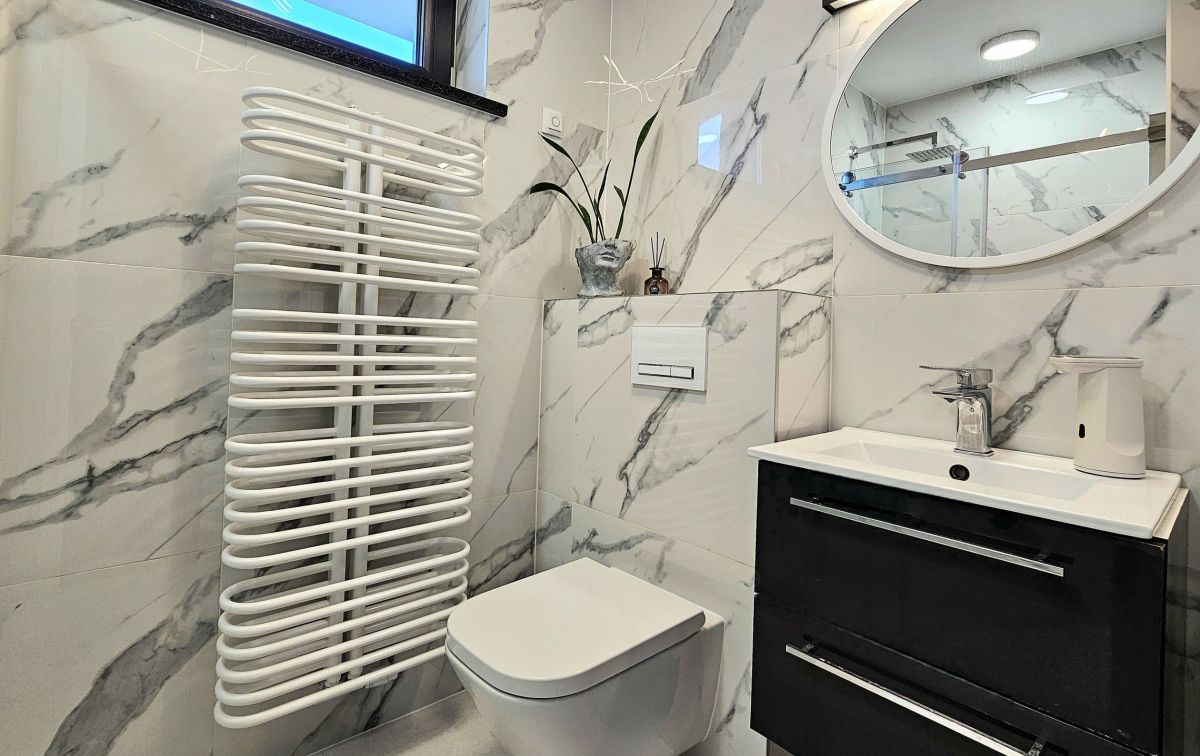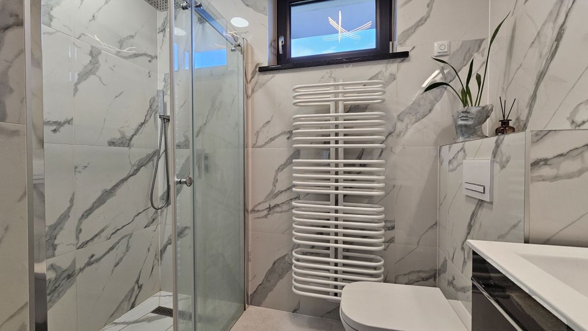 - elegancka łazienka o powierzchni 9,65 m² z wanną, prysznicem oraz zsypem na brudną bieliznę, który trafia bezpośrednio do pralni na parterze - wygoda na co dzień.