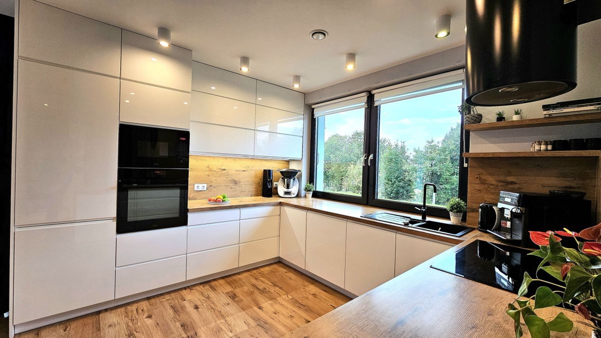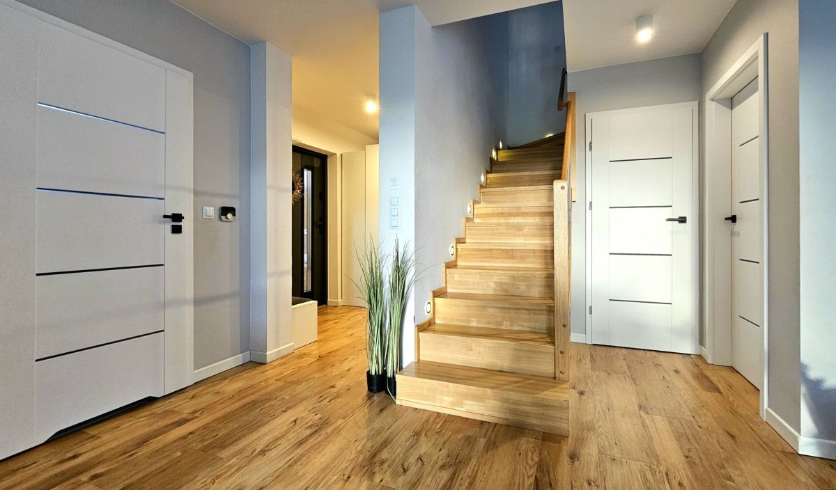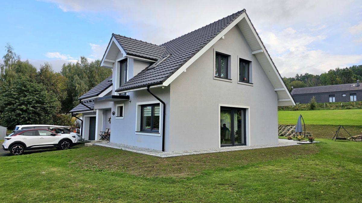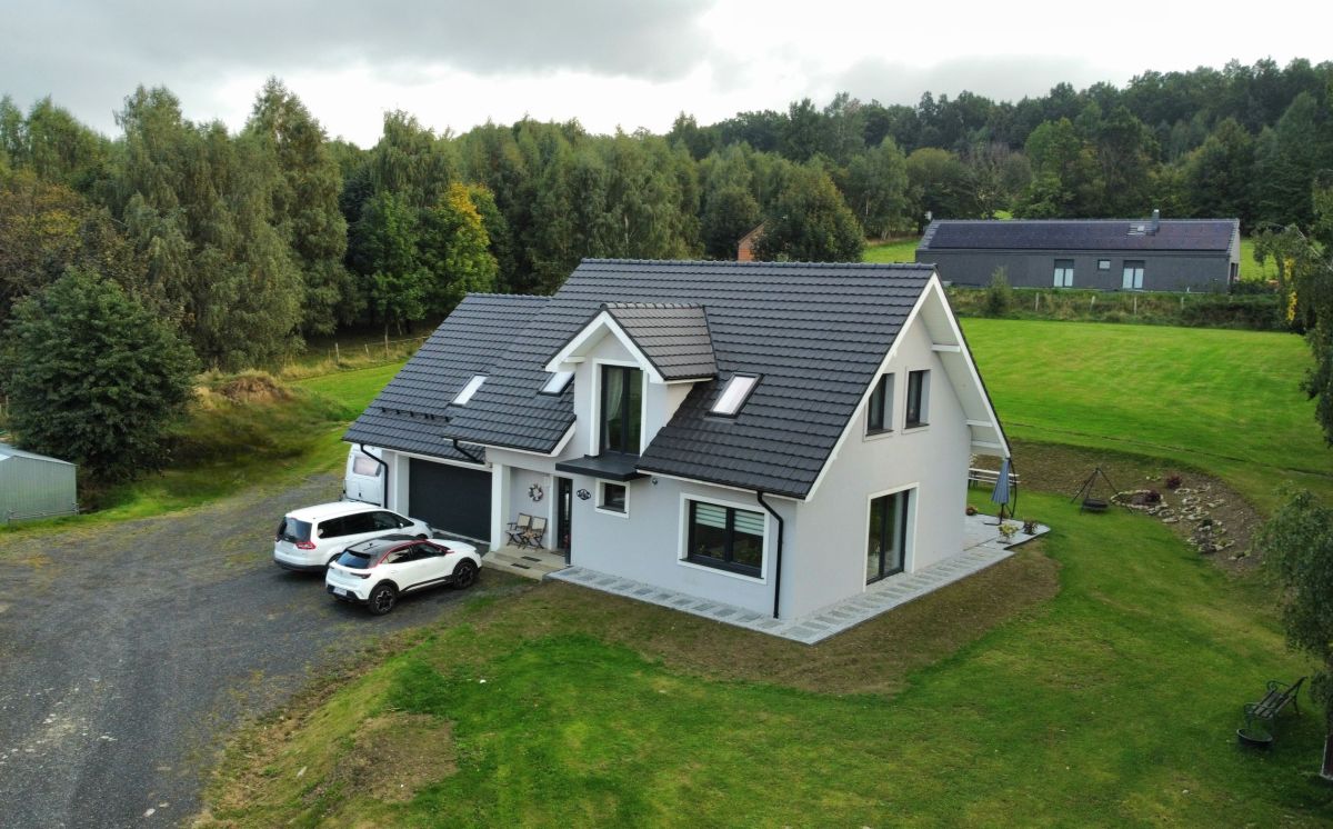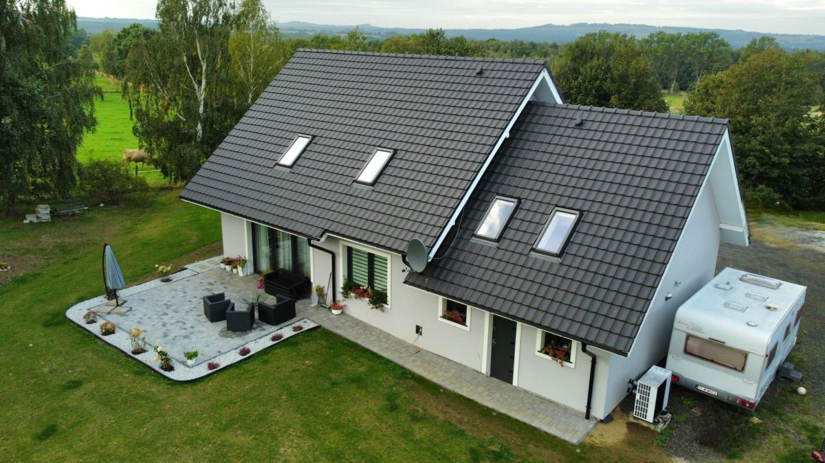 Dom wybudowany w najwyższym standardzie, z wykorzystaniem ekologicznych i energooszczędnych rozwiązań: beton komórkowy, dachówka ceramiczna, termoizolacja styropianem grafitowym o grubości 20 cm, pokrycie dachu pianą PUR, pompa ciepła oraz rekuperacja gwarantują niski koszt ogrzewania i komfort przez cały rok. Całość dopełniają ogrzewanie podłogowe, elektryczne rolety zewnętrzne na pionowych oknach oraz system monitoringu, zapewniający bezpieczeństwo i spokój.
