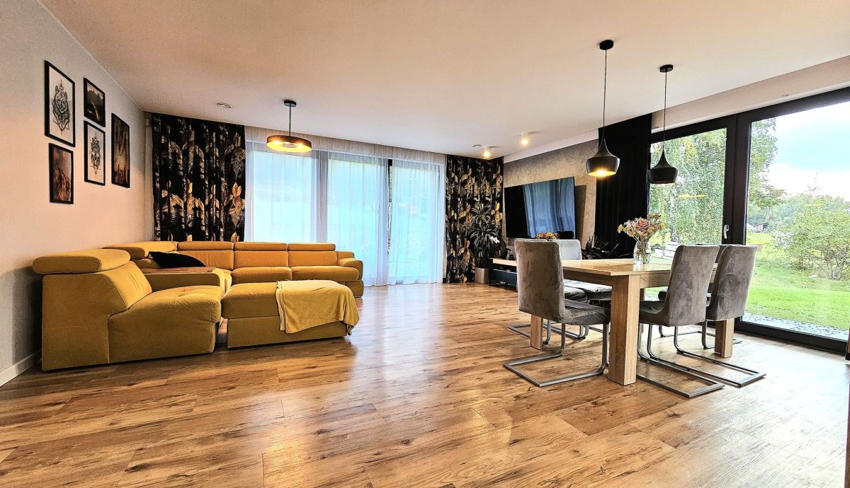 Prezentujemy dom o powierzchni użytkowej 156 m², rozłożony na 190 m² całkowitej powierzchni, usytuowany na rozległej działce o powierzchni aż 5 497 m². Z okien rozpościera się malowniczy widok na Góry Izerskie oraz kolej gondolową, co czyni tę nieruchomość wyjątkowym miejscem do życia.