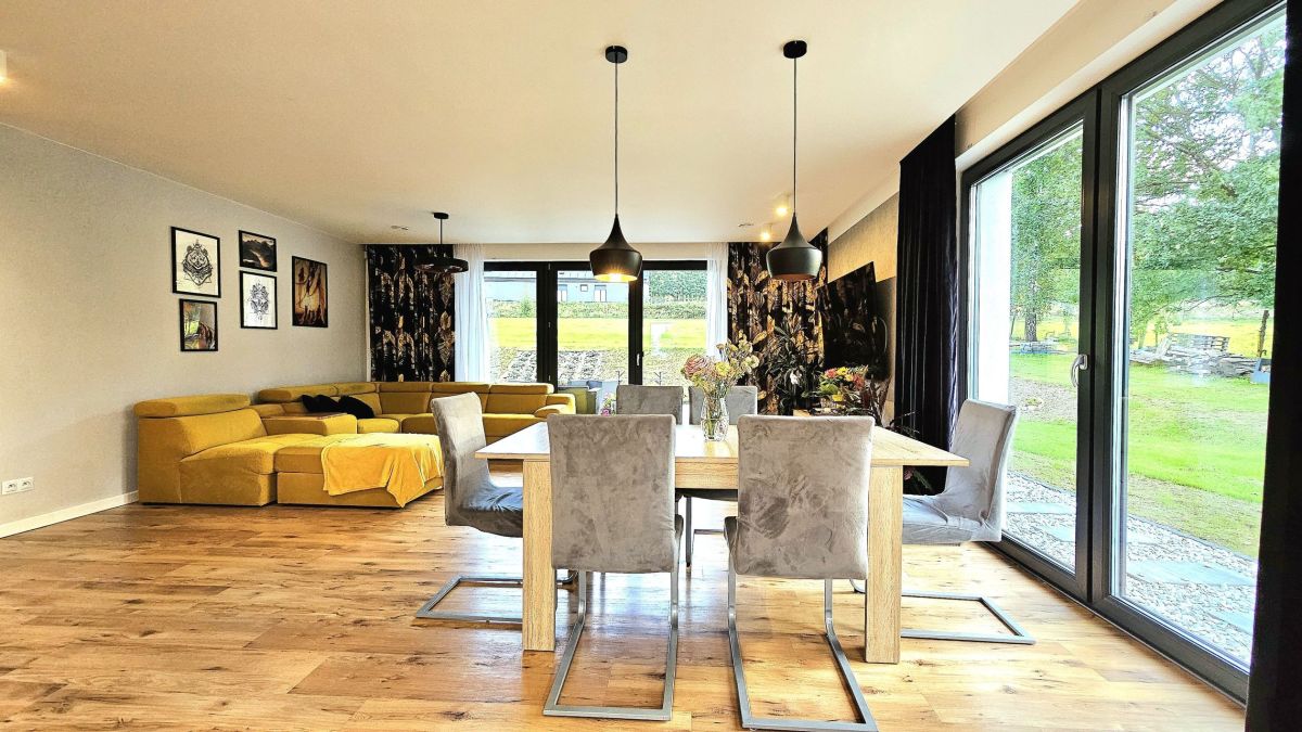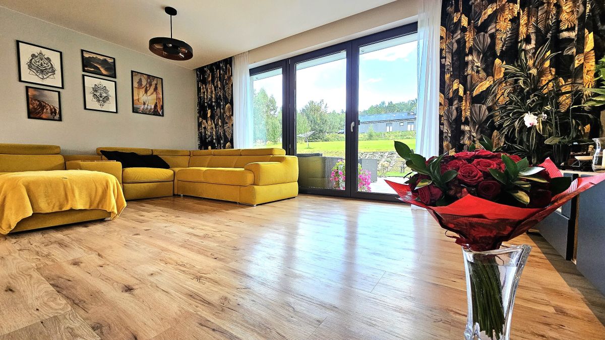 - przestronny salon z jadalnią o powierzchni 30,19 m², z wyjściem na taras o powierzchni 29 m², idealny na relaks i spotkania na świeżym powietrzu,