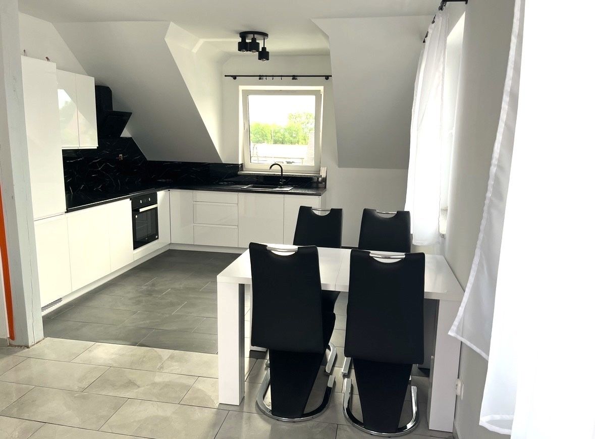 Mieszkanie zostało w pełni wyposażone , aby zapewnić Ci wygodę od pierwszego dnia: meble, płyta indukcyjna, piekarnik, okap, lodówka, zmywarka oraz pralka.