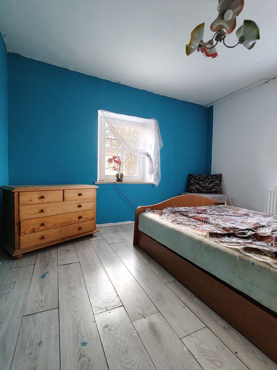 Mieszkanie na parterze jest w stanie do wykończenia, obejmuje kuchnię z salonem (35 m²), z nowymi przewodami elektrycznymi pod piekarnik, lodówkę i kuchenkę, a także osobny pokój (12 m²) i łazienkę z oknem (7 m²) - gotową do podłączenia wodno-kanalizacyjnego i elektrycznego. Na piętrze czeka na wykończenie przestronne mieszkanie z pokojem dziennym (20 m²), dwoma sypialniami (po 12 m² każda), kuchnią (16 m²) oraz łazienką z kabiną prysznicową (4,5 m²). Istnieje również możliwość zainstalowania drugiej łazienki z wanną oraz kominka, co zapewni komfort i przytulną atmosferę.