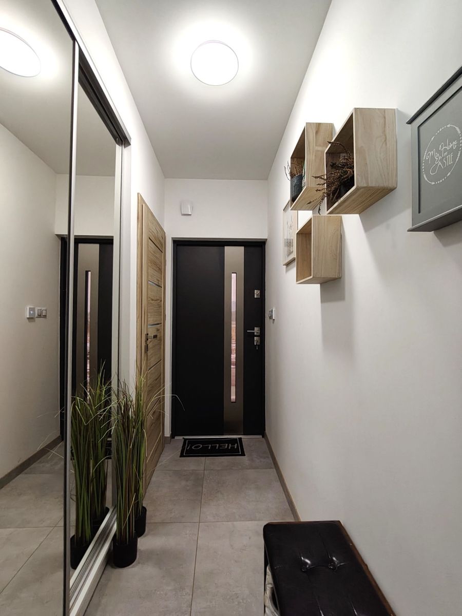 - Przedpokój o powierzchni 10 m² z pojemną szafą wnękową, ułatwiającą przechowywanie.